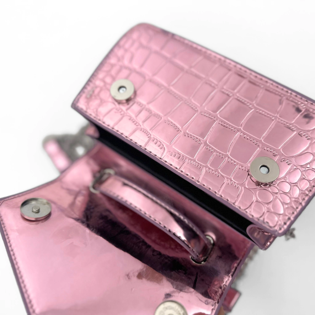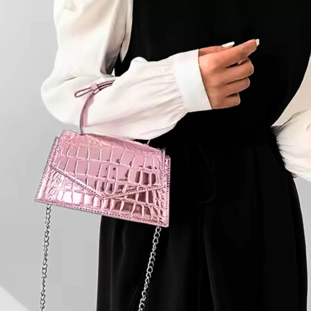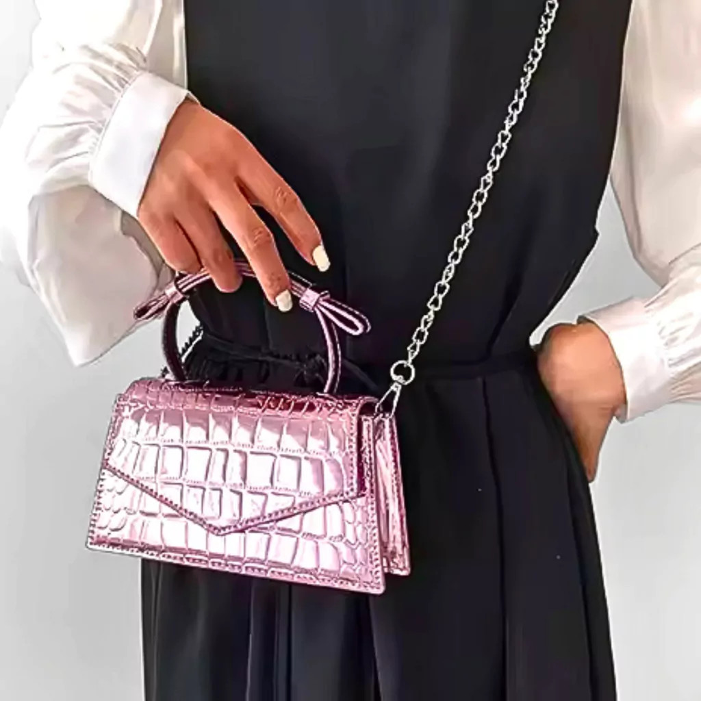 Detalles: Minibag. Cadena larga desmontable. Tapa que cierra con dos hebillas a presion. Interior estilo baul de cuero sintetico. Herrajes en color plata.